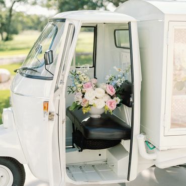 Let Francesca's charm transport you and your guests on an Italian escape. After all, what could be better than a glass of Prosecco served from a vintage Ape? Salute!